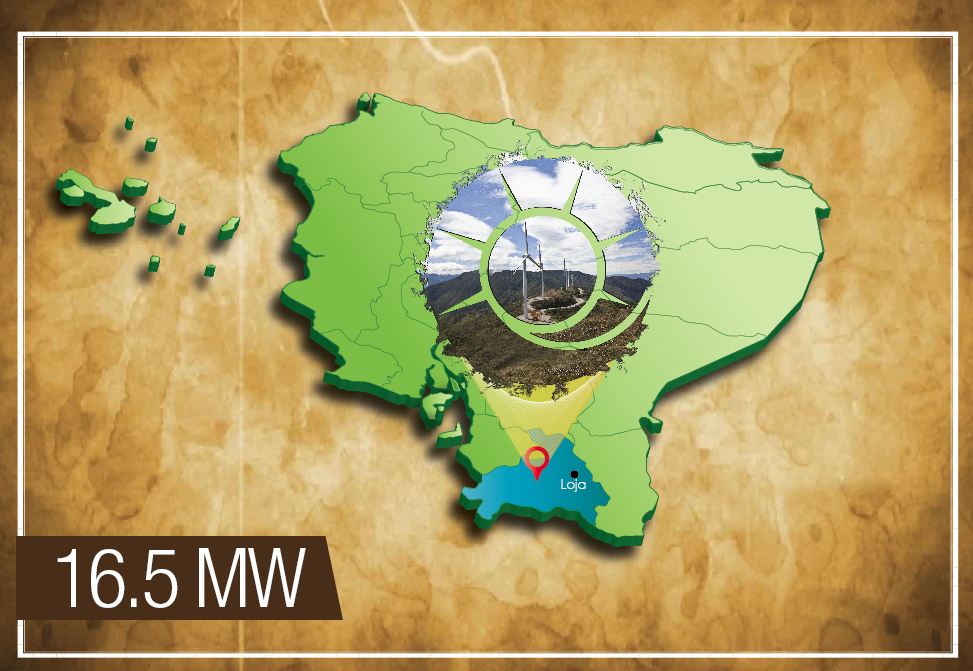 La Central Eólica inició su construcción en agosto de 2011 y se encuentra operando de forma normal y continua sobre la base de los requerimientos del sistema eléctrico ecuatoriano desde el 2 de enero de 2013, aportando al S.N.I. una energía neta de 676,20 GWh desde su entrada en operación a julio de 2022.