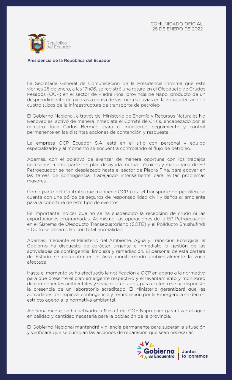 Comunicado oficial Nro 1 sobre rotura del OCP