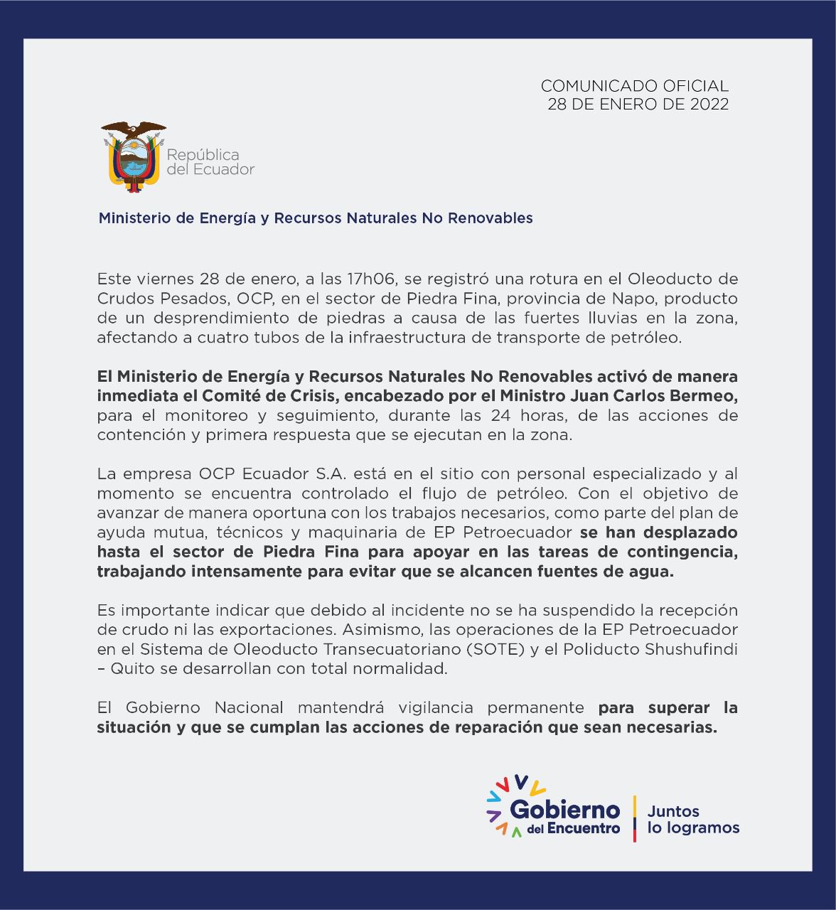 Comunicado oficial Nro 2 sobre rotura del OCP