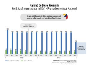 La calidad del Diésel Premium que se distribuye en el país, desde junio de 2021 hasta agosto de 2022, registra en promedio un valor aproximado de 51 partes por millón de azufre (ppm), lo que corresponde a 199 ppm por debajo de lo establecido en la norma NTE INEN 1489, que dispone un máximo de 250 ppm en el estándar del combustible. Además, mantiene una equivalencia al estándar EURO IV, lo que la iguala a los combustibles usados en los países de la región.