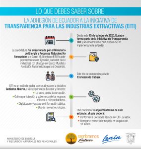 Este 16 de octubre de 2020, el Ministro de Energía y Recursos Naturales No Renovables, René Ortiz, anunció la adhesión del Ecuador a la Iniciativa de Transparencia para las Industrias Extractivas (EITI- por sus siglas en inglés). La aceptación fue oficializada por los representantes del Consejo Internacional de este organismo durante su Junta Internacional desarrollada en Noruega el pasado 15 de octubre.