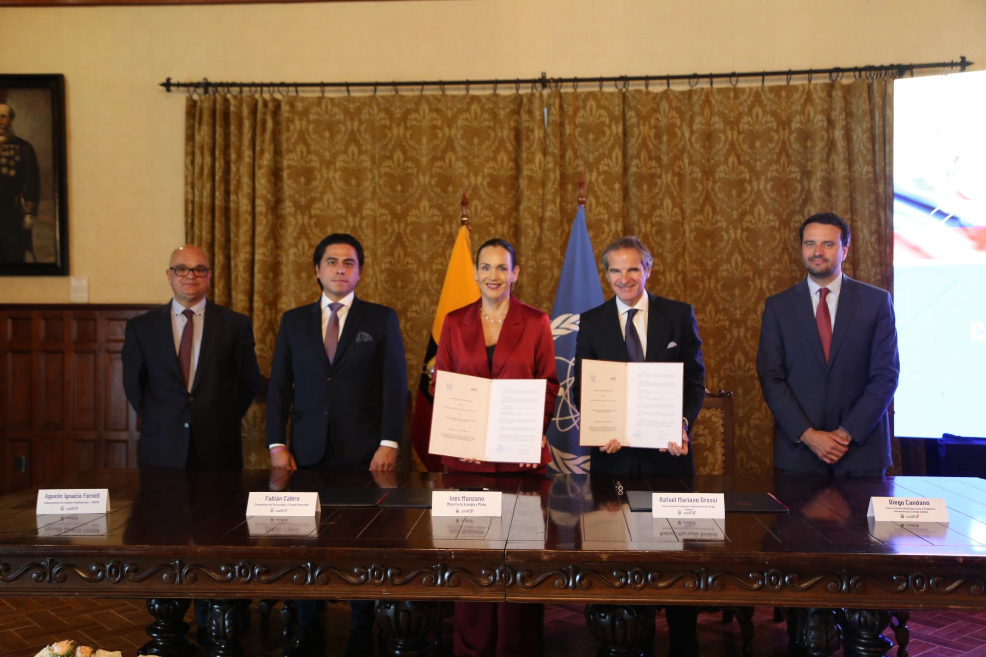 La ministra de Energía y Minas, Inés Manzano, suscribió un memorando de entendimiento con el director General del Organismo Internacional de Energía Atómica (OIEA), Rafael Mariano Grossi, con el objetivo de brindar cooperación estratégica para Ecuador, en áreas clave como generación de energía, formación técnica, fortalecimiento de infraestructuras y el uso seguro de fuentes radioactivas.