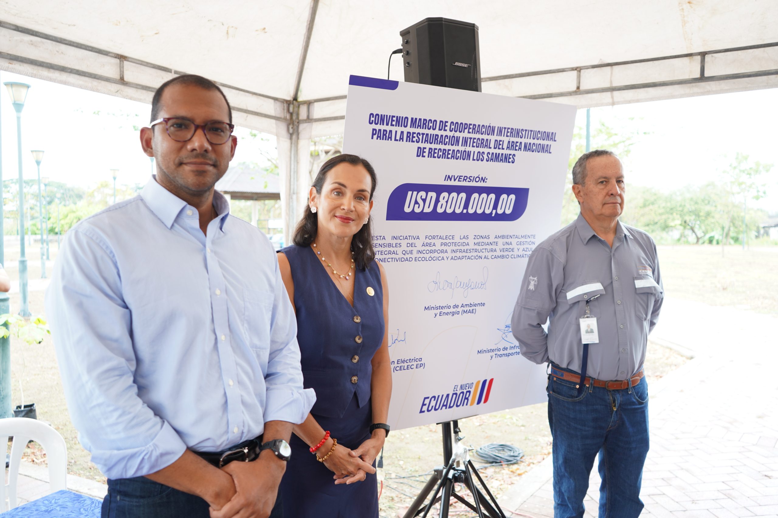 El Gobierno Nacional reafirma su compromiso con la protección del patrimonio natural y el bienestar de la ciudadanía mediante la firma de un convenio interinstitucional entre el Ministerio de Ambiente y Energía (MAE), la Corporación Eléctrica del Ecuador (CELEC EP) y el Ministerio de Infraestructura y Transporte (MIT), orientado a la restauración integral del Área Nacional de Recreación Los Samanes, uno de los espacios naturales urbanos más importantes del país.