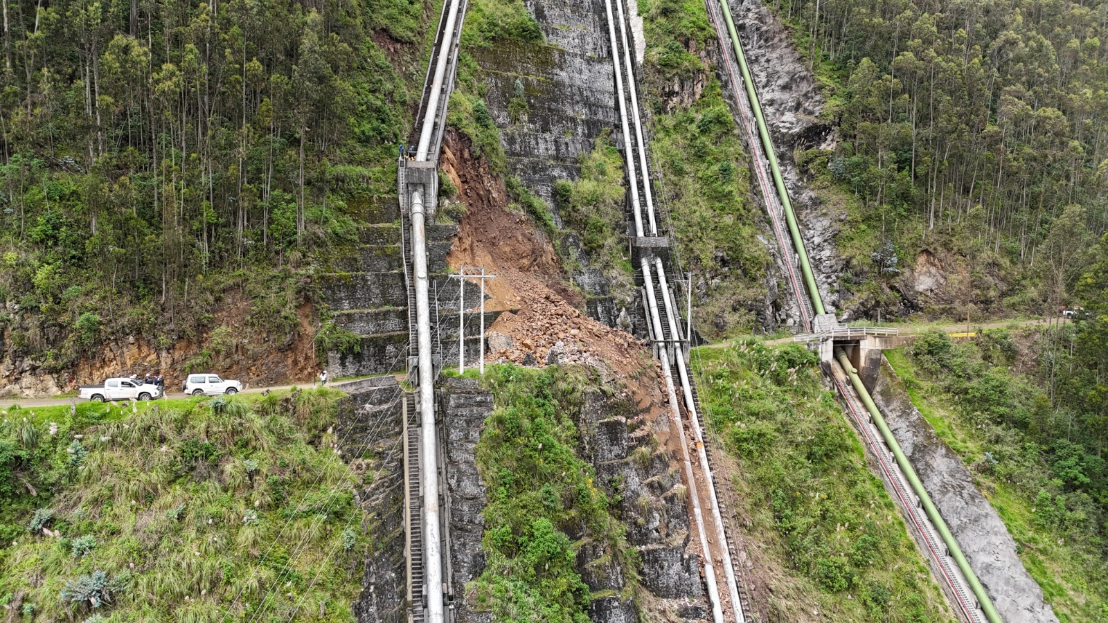 El Gobierno Nacional realiza acciones de reparación en la Central Hidroeléctrica Saymirín en Cuenca, por los daños en la tubería provocados por las lluvias