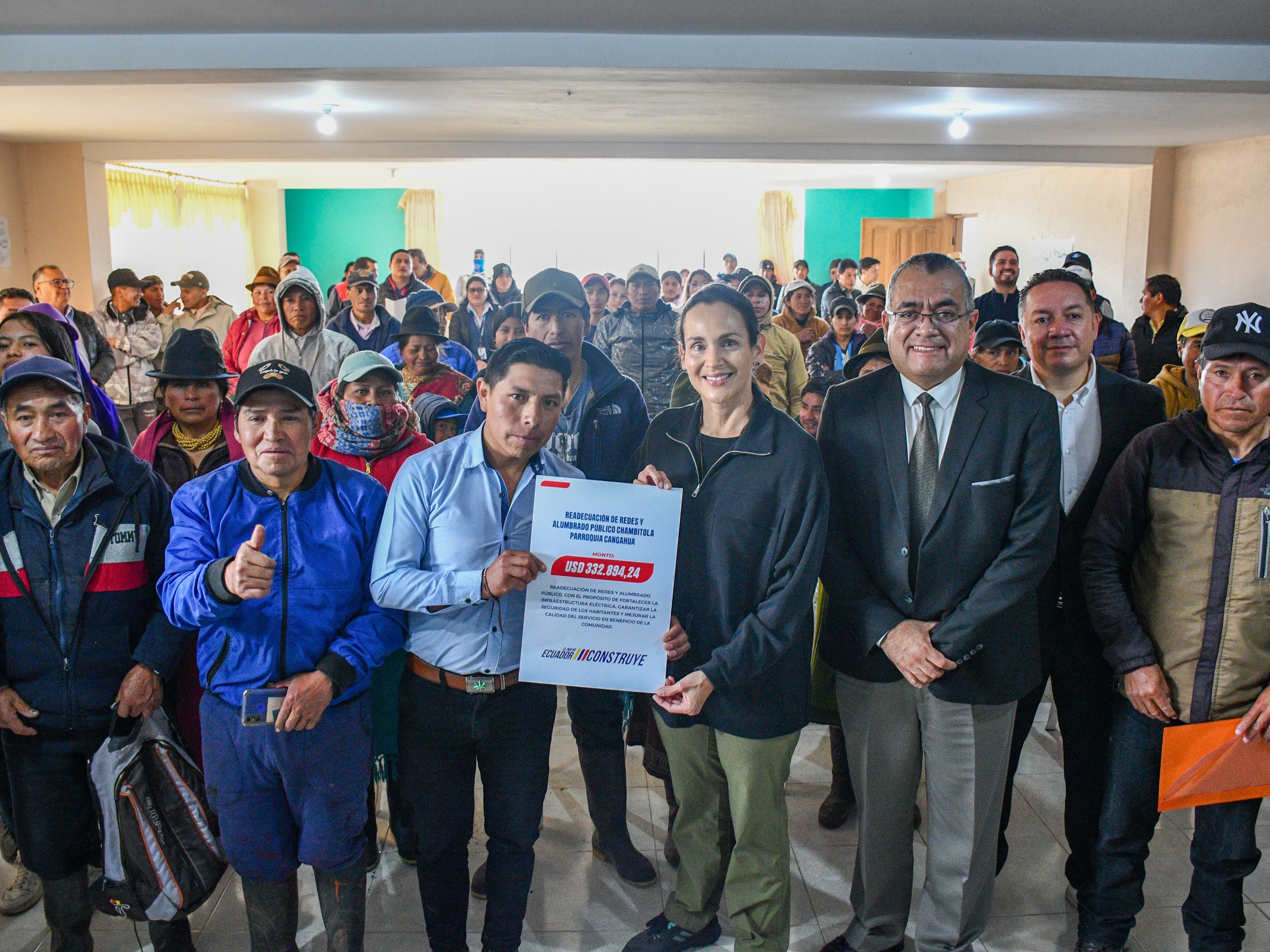 La ministra de Ambiente y Energía, Inés María Manzano, entregó en el cantón Cayambe dos importantes obras que mejoran la calidad de vida de la población rural: el proyecto de readecuación de redes y alumbrado público en Chambitola y la entrega de resoluciones administrativas para el uso responsable del recurso hídrico en las parroquias Ascázubi y San José de Ayora.