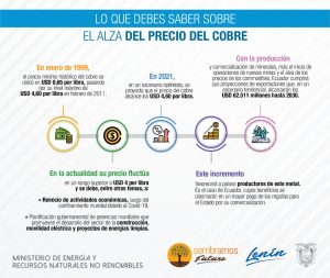 Es así que el alza del precio del cobre, anclado al “mercado alcista con tintes verdes” como lo han denominado analistas de instituciones financieras internacionales como Goldman Sachs, favorecerá sin duda a los países productores de este metal. Este es el caso de Ecuador, cuyos beneficios se plasmarán en un mayor pago de las regalías para el Estado por su comercialización.