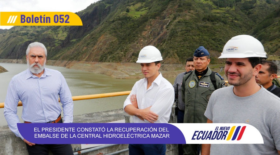 Situada entre Azuay y Cañar, la hidroeléctrica posee la mayor capacidad de almacenamiento del país y abastece de energía a otras centrales como Molino y Sopladora. Durante la visita, el ministro de Energía y Minas (e), Roberto Luque, quien acompañó al Jefe de Estado, informó que las condiciones climáticas favorables han permitido una recuperación significativa de las cotas y caudales del embalse de Mazar.