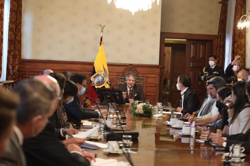 La suscripción del Decreto se efectuó en el marco de una reunión mantenida esta tarde entre el Gobierno Nacional y el sector minero. Para el director de la Cámara de Minería del Ecuador, Santiago Bustamante, el trabajo articulado y constante con el Gobierno del Encuentro se enfoca precisamente en “apoyar la actividad minera responsable bajo los más altos estándares de responsabilidad”.
