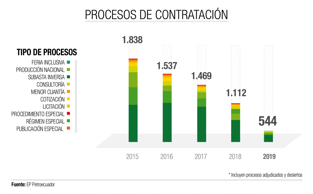 EP Petroecuador disminuye de 1.838 procesos de contratación pública de bienes y servicios en 2015, a 544 hasta agosto de 2019