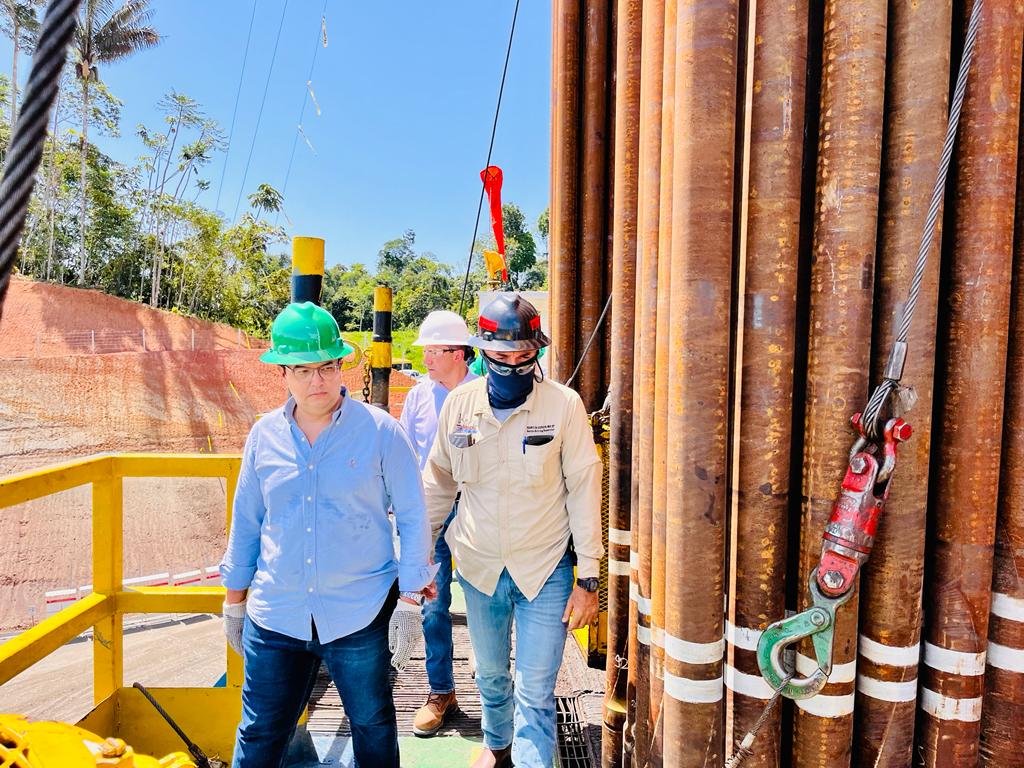 El Ministro de Energía y Minas, Xavier Vera Grunauer, realizó un recorrido técnico por las instalaciones del campamento ubicado en el Bloque Chanangue, provincia de Sucumbíos. Durante esta actividad, el Secretario de Estado constató el arranque de la operatividad de los taladros de perforación en el pozo Bocachico 1.