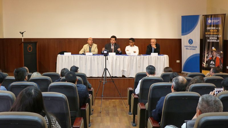 En el conversatorio también participaron, Leonardo Núñez, director de la Escuela de Ingeniería en Minas de la Universidad del Azuay; Patricio Vargas, presidente de la Cámara de Minería de Cuenca y Fernando León, asesor jurídico de la Cámara de la Pequeña Minería del Ecuador.