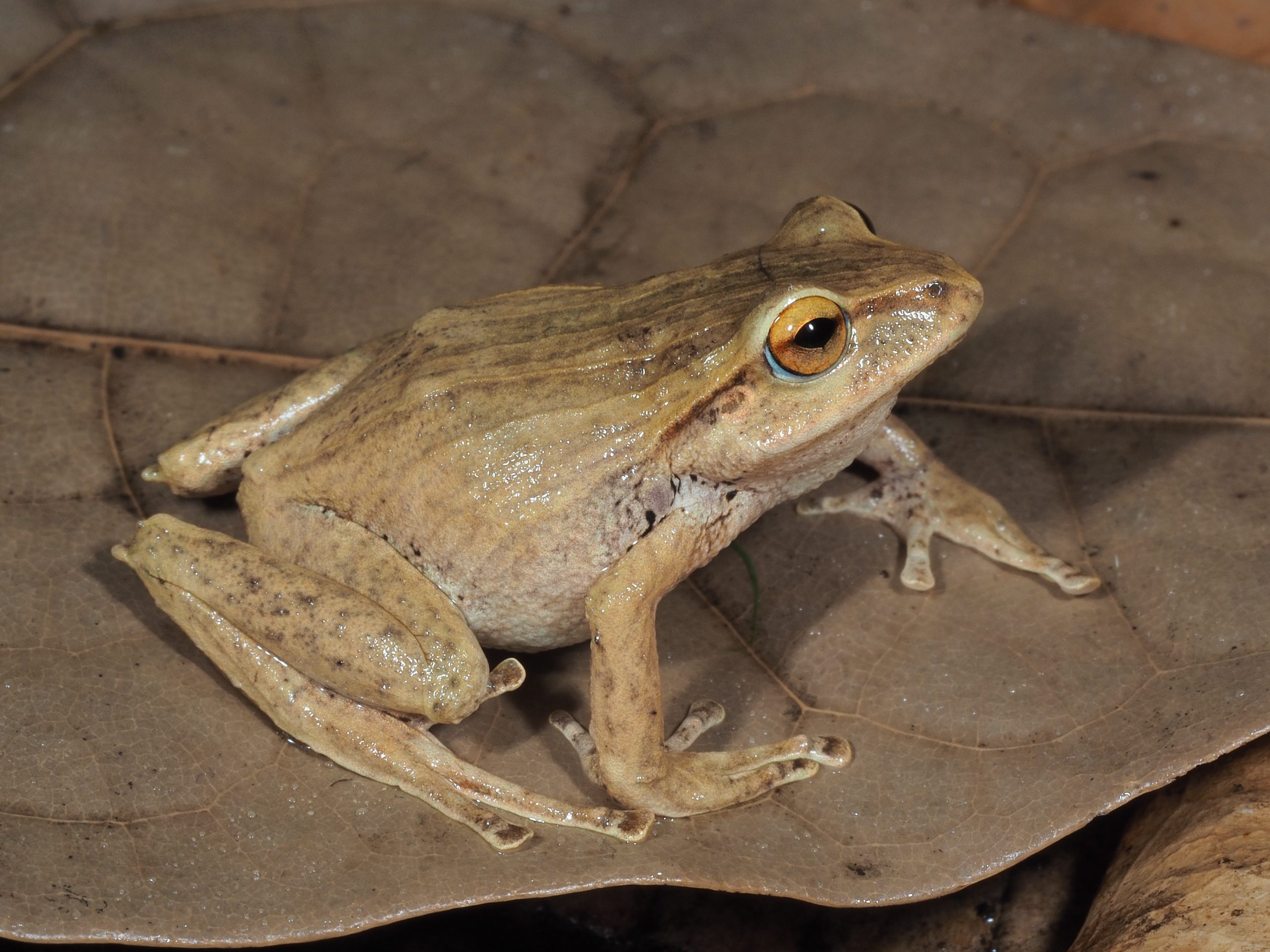 - Pristimantis oculolineatus: Rana de tamaño pequeño con un rasgo distintivo: línea oscura bien marcada que atraviesa el ojo, y una coloración dorsal crema a marrón con manchas irregulares. Se distribuye dentro de áreas protegidas como Parque Nacional Podocarpus y Parque Nacional Yacuri y la Reserva Numbala.
