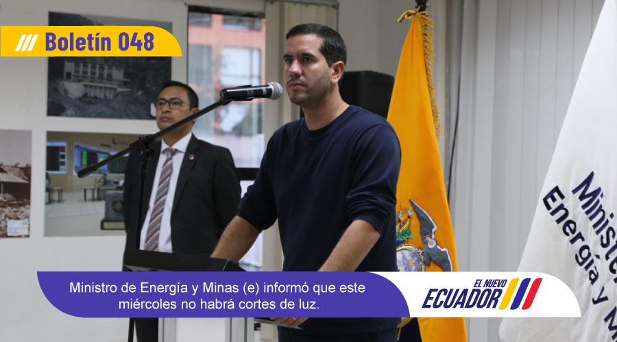 El Ministro de Energía y Minas (e), Roberto Luque, informó que, debido a las condiciones climáticas y las precipitaciones en Paute y Mazar, no se cortará el suministro eléctrico este miércoles.