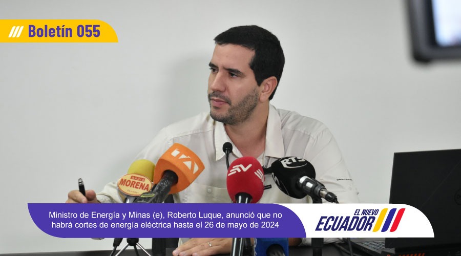 Este 14 de mayo, en el marco de la decimocuarta rueda de prensa que se desarrolló desde el Gobierno Zonal de Guayaquil, el ministro de Energía y Minas (e), Roberto Luque indicó que por las buenas condiciones climáticas se mantiene la suspensión de apagones hasta el 26 de mayo, a nivel nacional.