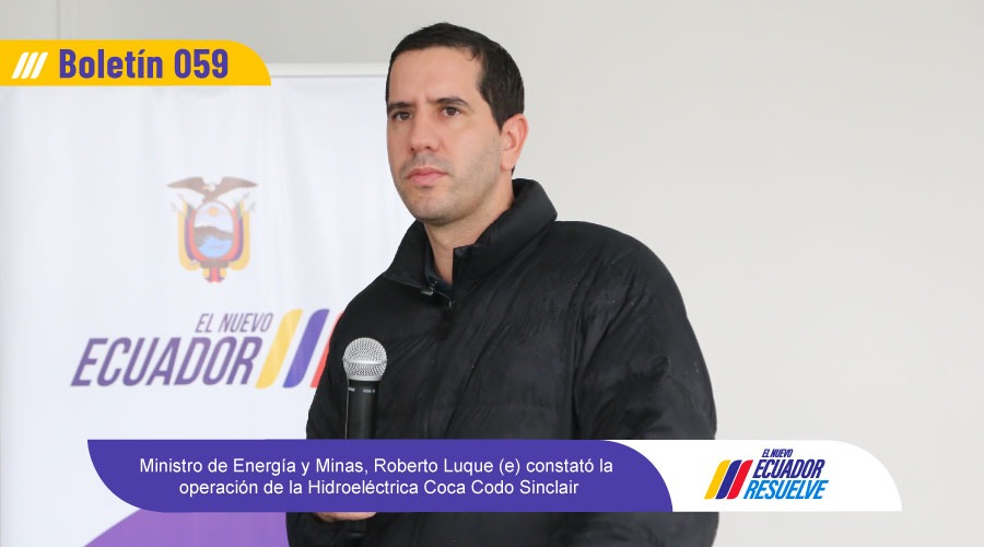 Este 30 de mayo, durante la rueda de prensa número 17, el ministro de Energía y Minas (e), Roberto Luque, indicó que para el Gobierno Nacional, resulta prioritario recuperar el proceso licitatorio para la contratación de un dique seco cuyo objetivo será el proteger las obras de captación de la Hidroeléctrica Coca Codo Sinclair. Lo hizo en el marco de la visita técnica a la central, ubicada en las provincias de Napo y Sucumbíos, en los cantones El Chaco y Gonzalo Pizarro.