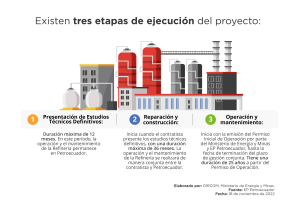 - Presentación de Estudios Técnicos Definitivos: Duración máxima de 12 meses. En este período, la operación y el mantenimiento de la Refinería permanece en Petroecuador.