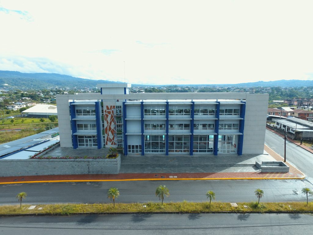 El nuevo edificio está ubicado en el barrio Juan Montalvo en la Av. 13 de Abril y calle 9 de Octubre de la ciudad de Puyo. Tiene un área de construcción de 2.000 metros cuadrados, conformada por el centro integrado de atención al cliente, las secciones técnica y comercial, la dirección general, el centro de capacitación y el auditorio institucional.El diseño arquitectónico de este edificio, lo hace moderno y amigable con el entorno social y natural; su estructura permitirá atender a la ciudadanía con comodidad, a través de los servicios de climatización, ascensores, acceso para personas con capacidades especiales, entre otros servicios. El espacio físico está adecuado para que aproximadamente 200 personas, entre usuarios y colaboradores desarrollen sus actividades.