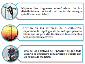 El PLANREP es un conjunto de proyectos que permiten reducir las pérdidas de carácter técnico y comercial, que se ejecutan en todas las empresas eléctricas de distribución del país.
