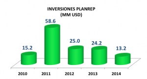 La inversión realizada desde el año 2010 al 2013 (4 años), asciende a USD 122,9 millones.