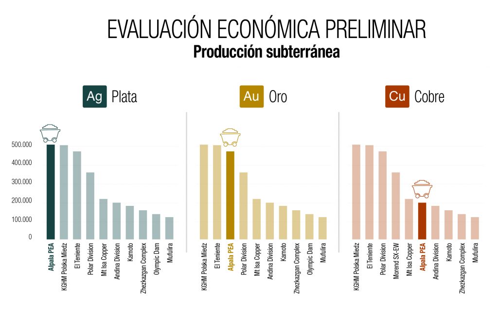 Este miércoles 12 de junio, se presentaron los resultados de la Evaluación Económica Preliminar (PEA, por sus siglas en inglés) del proyecto minero de segunda generación, Cascabel, situado al norte del país, en Imbabura. Aquí se establece que su depósito mineral Alpala, se convertiría en la mina subterránea más grande de plata, tercera de oro y sexta de cobre en el ranking mundial, de acuerdo a las estimaciones de reservas minerales que alcanzan los 10.9 millones de toneladas de cobre y más de 23 millones de onzas de oro.
