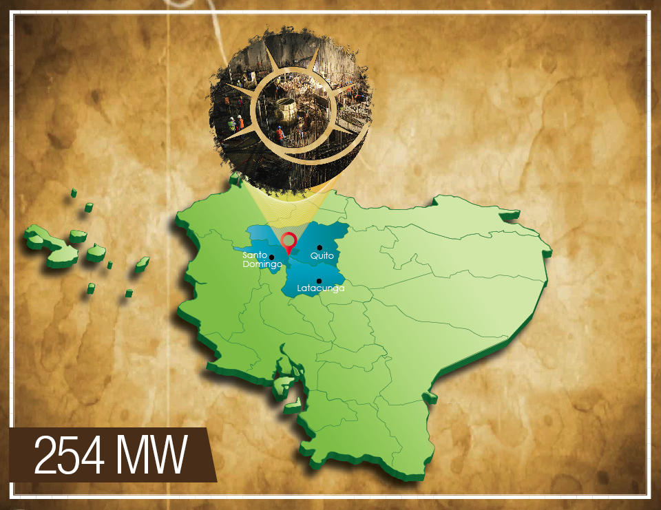 El Proyecto Hidroeléctrico aprovecha el potencial de los Ríos Toachi y Pilatón, con un caudal medio anual de 41.30 m3/s y 28.65 m3/s respectivamente, aprovechables para su generación aportando una energía media de 1120 GWh/año.