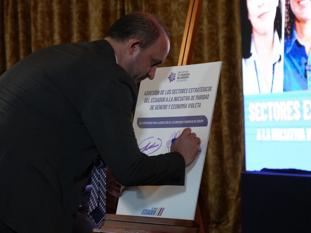 El Gobierno de El Nuevo Ecuador oficializó la incorporación de instituciones de sectores estratégicos a la Iniciativa de Paridad de Género y Economía Violeta. El acto formal se llevó a cabo este 19 de febrero de 2025, en Quito, y contó con la participación de representantes de carteras estratégicas como Energía y Minas, Ambiente, Agua y Transición Ecológica, Transporte y Obras Públicas, Agricultura y Ganadería, Telecomunicaciones, entre otras, así como representantes de empresas estatales y privadas.