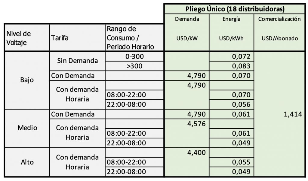 Bajo esta premisa, a este sector se le aplicarán los siguientes cargos tarifarios: