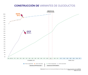 Cabe destacar que el Oleoducto de Crudos Pesados, OCP Ecuador, también trabaja en jornadas de 24 horas para concluir con la construcción de su variante. El avance actual de esta obra es del 62.6% y se espera concluir la primera semana de enero de 2022.